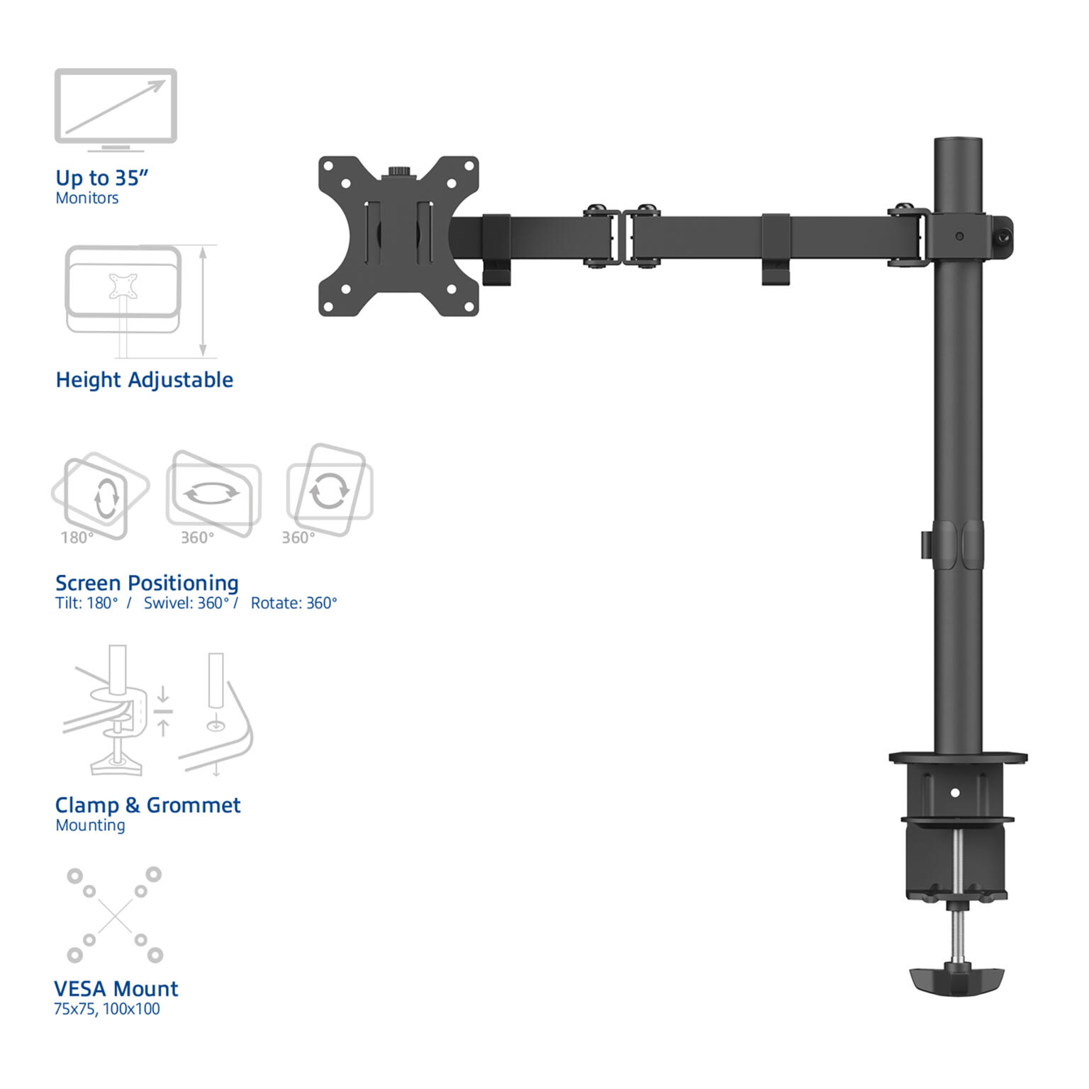 ACT AC8327 monitor mechanische bureausteun klem tot 40"