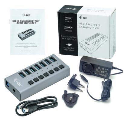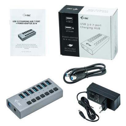 i-tec 7 poorts USB 3.0  charging hub + 36W power adapter