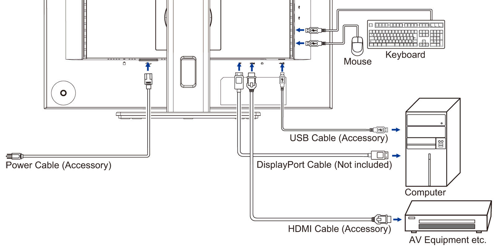 Meegeleverde kabels: HDMI, Stroom, USB